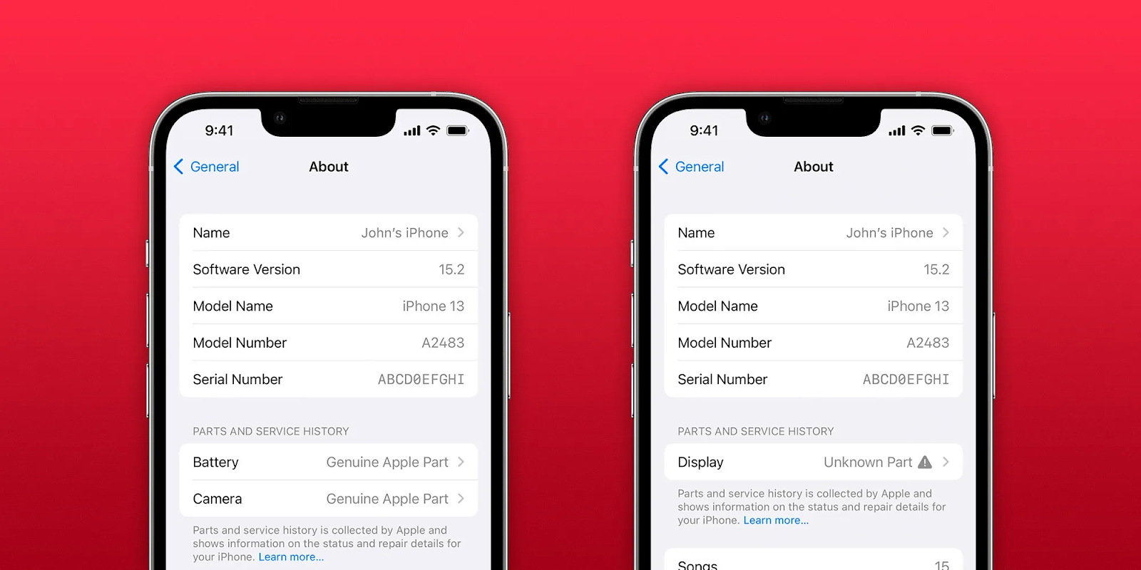 В iOS 18 функциональность была расширена. Пользователь может увидеть дату сервисного вмешательства, тип использованной детали (Apple, «неизвестная» или «неоригинальная») и отображает предупреждение при использовании компонентов от другого устройства.
