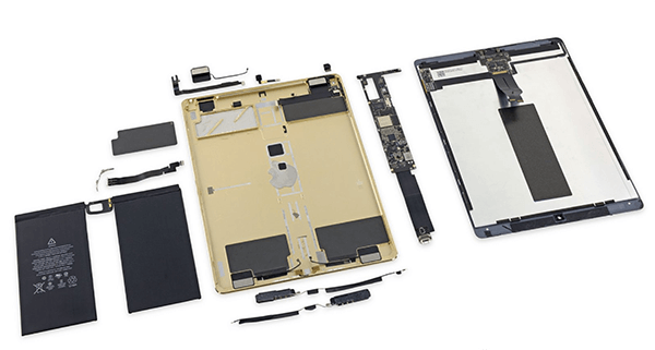 Нередко происходят ситуации, когда требуется ремонт после падения. Случайное механическое воздействие на устройство способствует тому, что гаджет получает повреждения в районе дисплея. В данном случае, ремонт может заключаться как в полной замене LCD, так и установке нового стекла. Если экран корректно отображает всю информацию и реагирует на касания, то в подобной ситуации необходимо выполнить установку нового защитного стекла. Говоря про эту модель планшета, то данный вариант ремонта является более легким, так как экран идет в сборе. При ситуации, когда дисплей не реагирует на касания и некорректно отображает всю информацию, то производится установка нового модуля. Ремонт достаточно сложный и занимает 1-2 дня после обращения. Отдельно хочется рассказать про дисплейный модуль, используемый в этой модели гаджета. В частности, здесь установлена 12,9-дюймовая матрица типа IPS. Ее разрешение достаточно большое и составляет 2732 на 2048 точек. Отличительной особенностью дисплея является то, что между стеклом и самой матрицей отсутствует воздушный промежуток. Производителем использовался дисплей типа One Glass Solution.