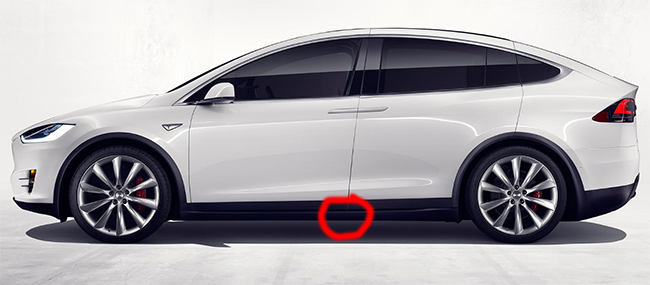 Щоб відкрити Model X з непрацюючим брелоком потрібно піднести ключ (можна навіть без батарейки) до нижньої стійки біля водійських дверей (фото вище).