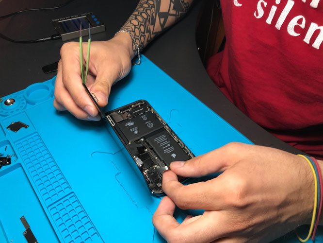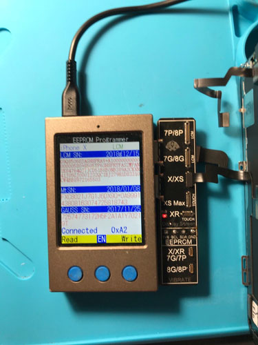 Після розбирання дисплея слід прошити новий дисплей старими даними модуля. Робиться дана процедура для того, щоб працювала функція TrueTone (автояркість). Процедура виконується швидко, 2-3 хвилини за допомогою спеціального програматора
