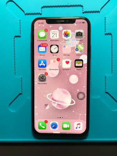 На цьому фото вихідний стан iPhone X нашого клієнта. Смуга 30% екрану – це пошкодження OLED матриці, відновленню такого дисплею, на жаль, не підлягає.
